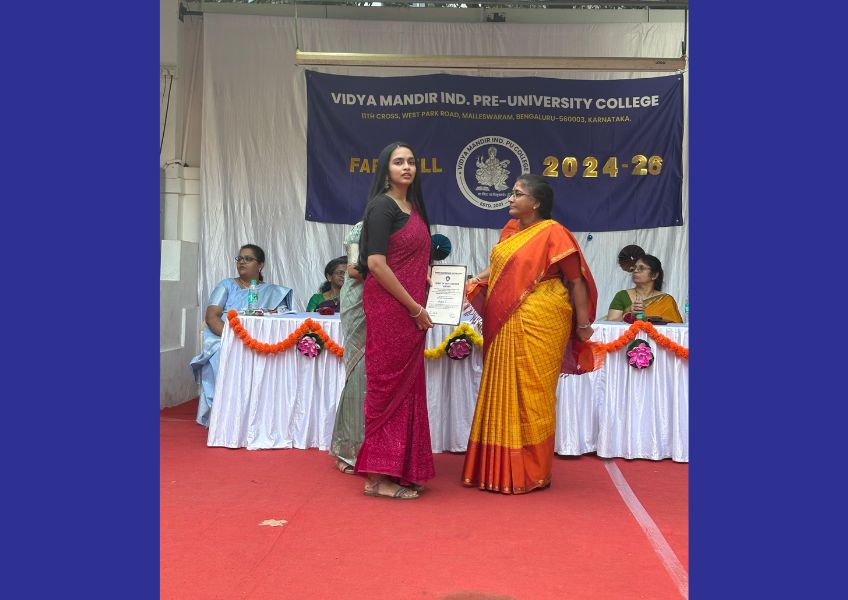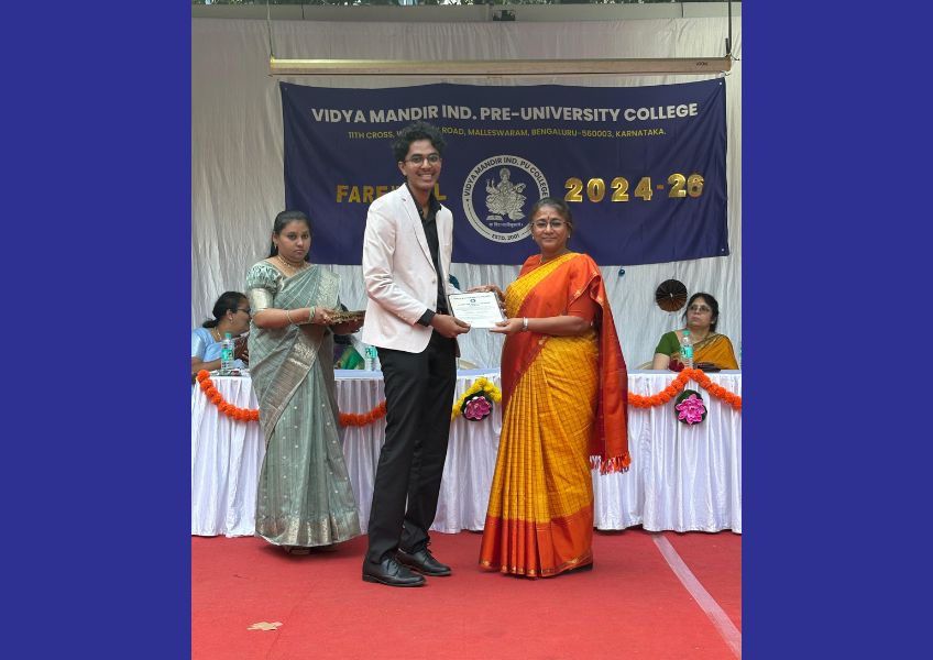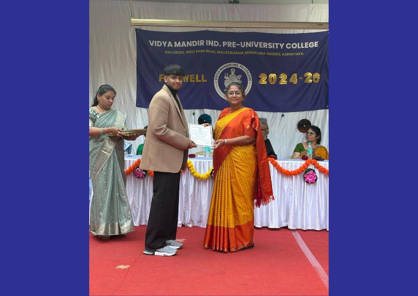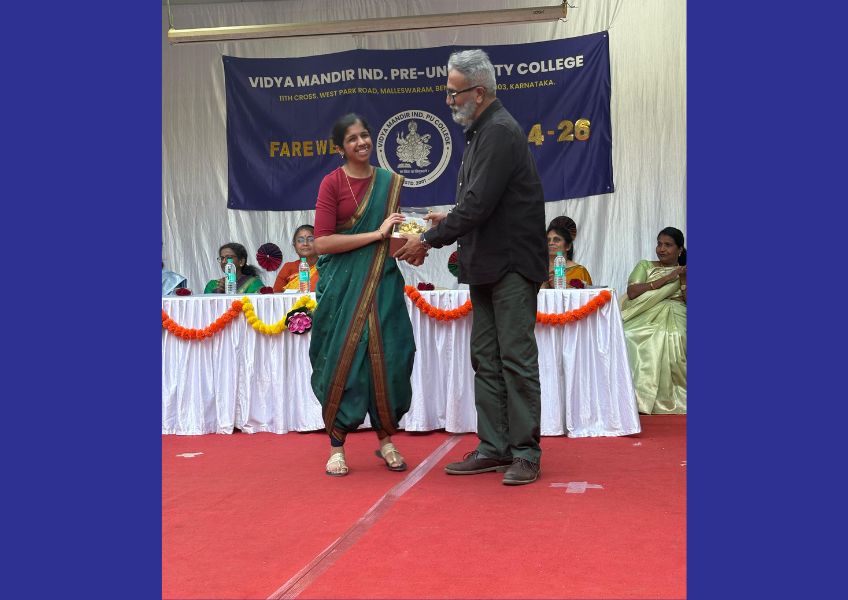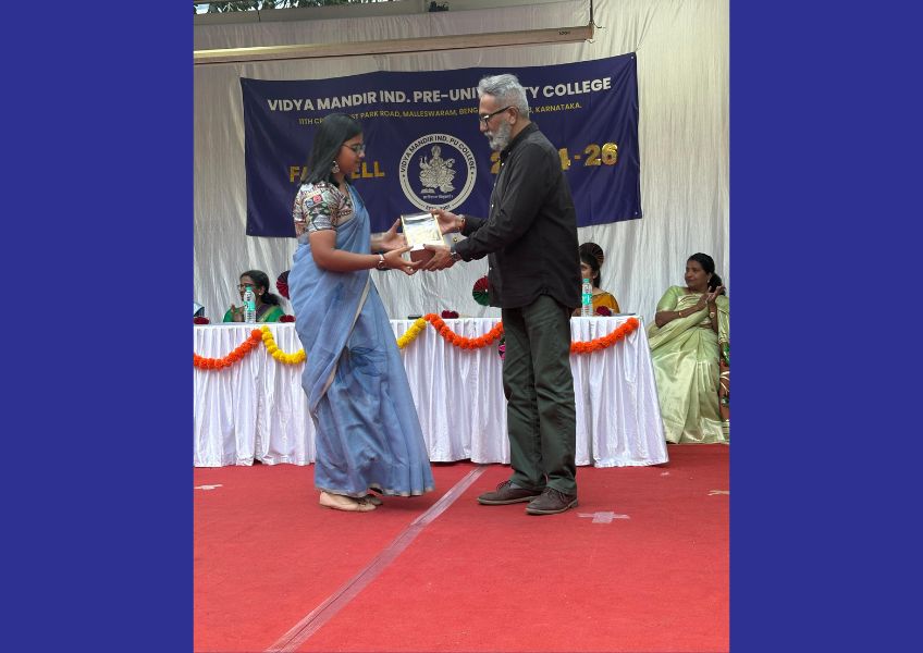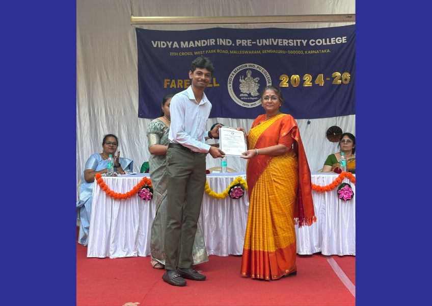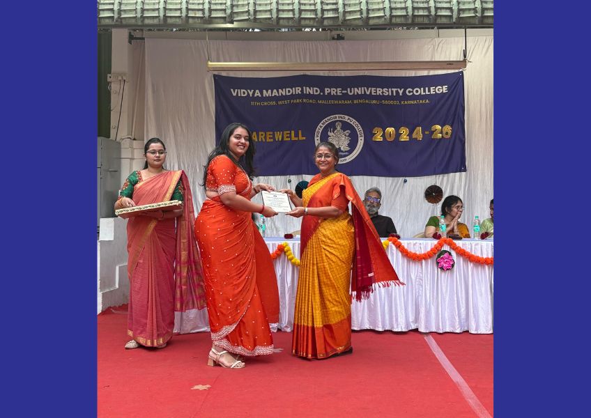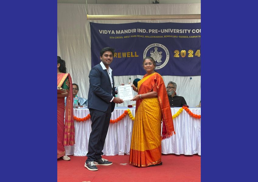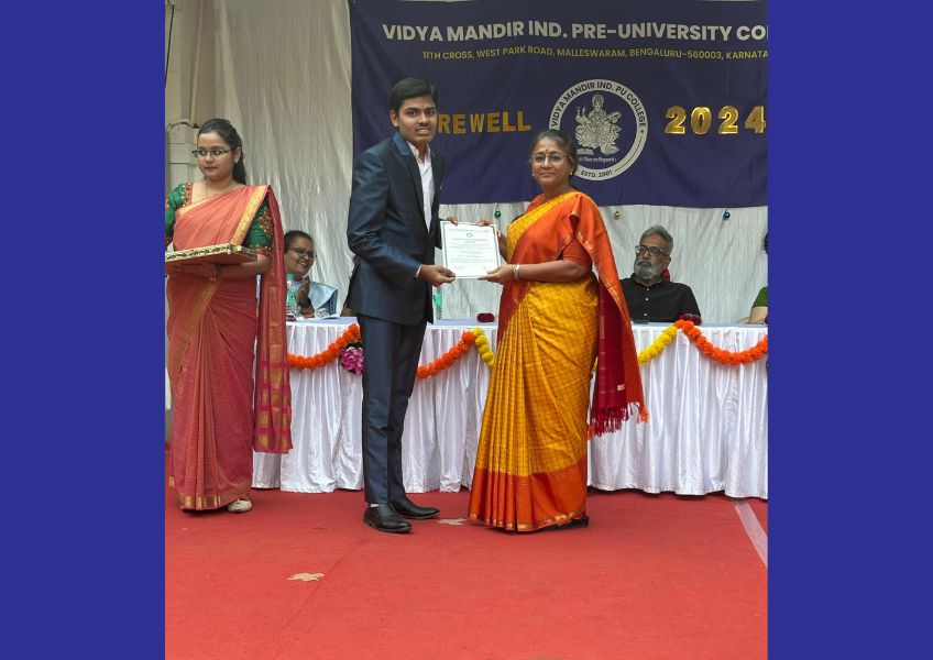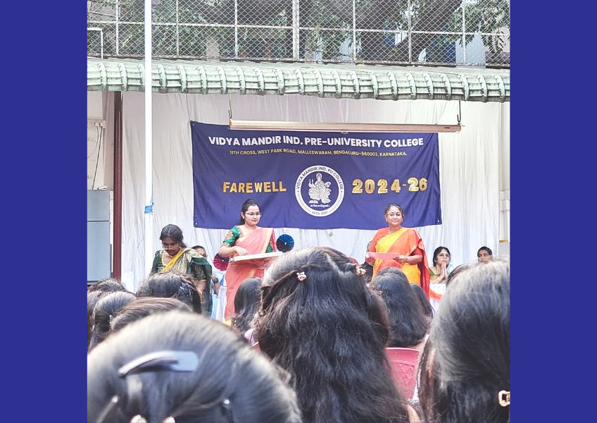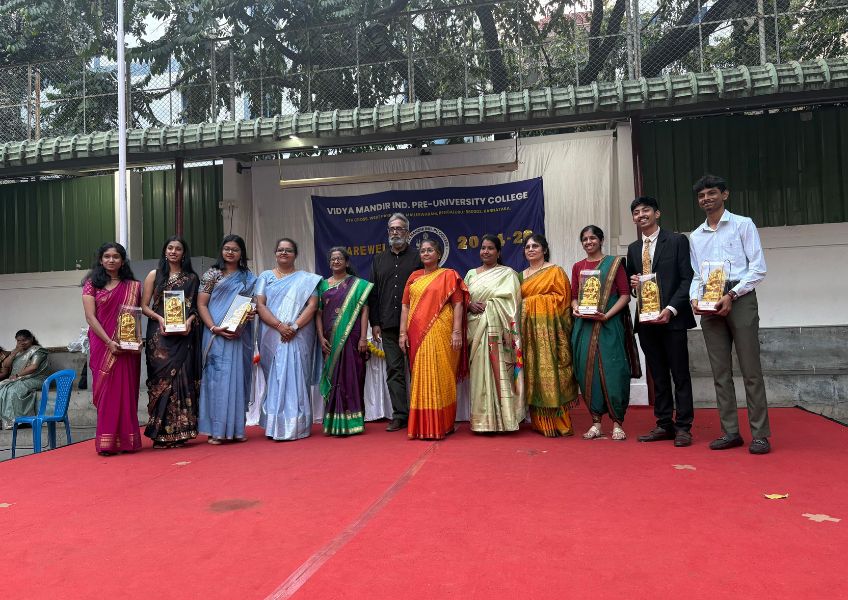 Farewells are those bitter sweet moments when we are ready to let our dear students soar out of our nest to conquer the skies. The college hosts the Farewell day party for the outgoing batch of II PU students every year, a few months before their board examinations. The batch of 2023 witnessed a colorful party hosted for them. A grand ceremony was organized to give the outgoing batch a fitting farewell. The II PU students turned up, dressed in their best, preparing for an evening with mixed emotions. During the official function, students got a platform to share their experiences. Selected students were conferred the “Spirit of Vidya Mandir” award for relentlessly upholding the spirit of the institution. Two students Vaishnav.S and Mohd.Salman were given the Best Student award which is a recognition of sterling virtues and bright personalities in our students.