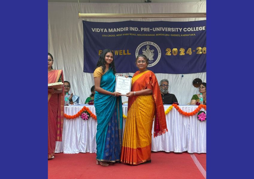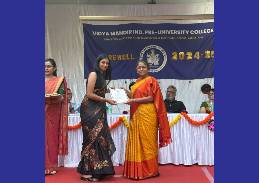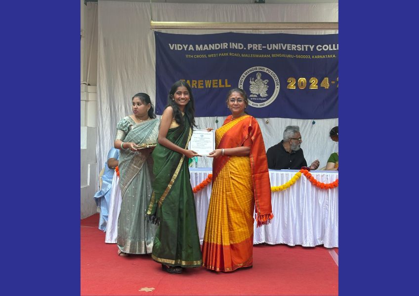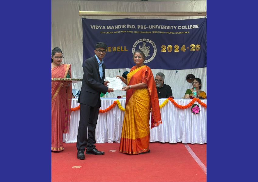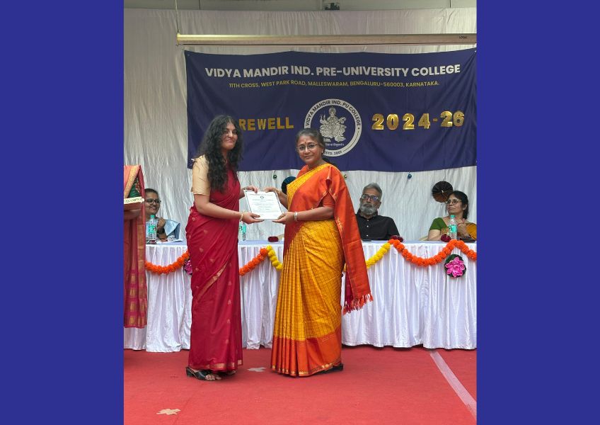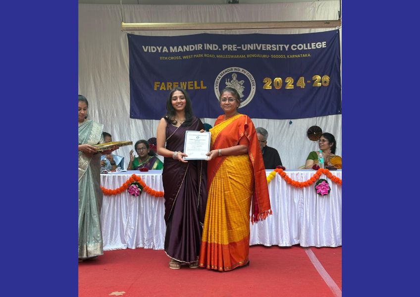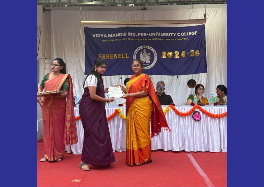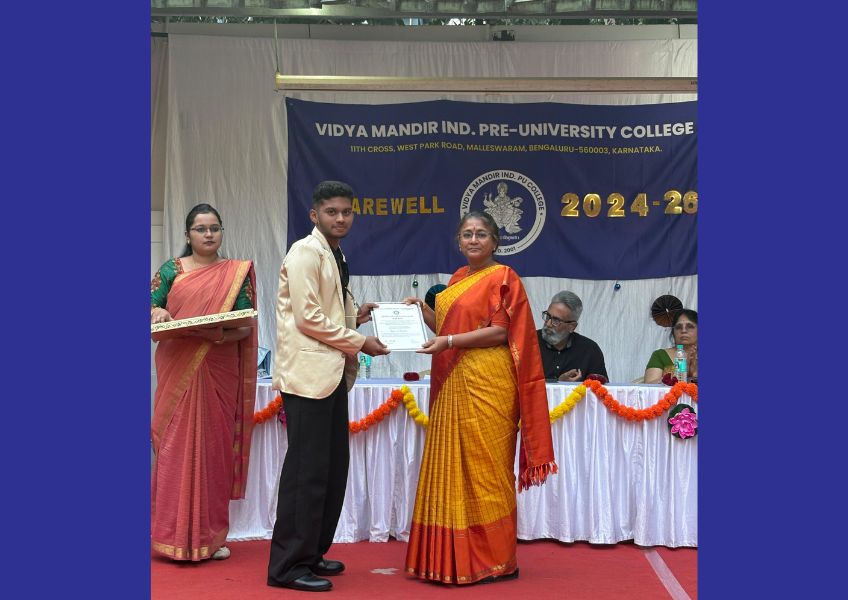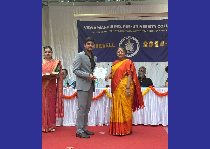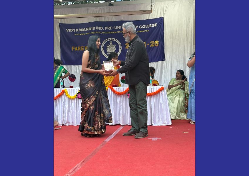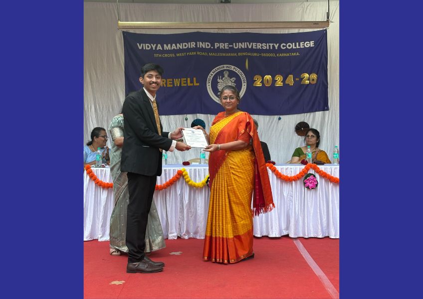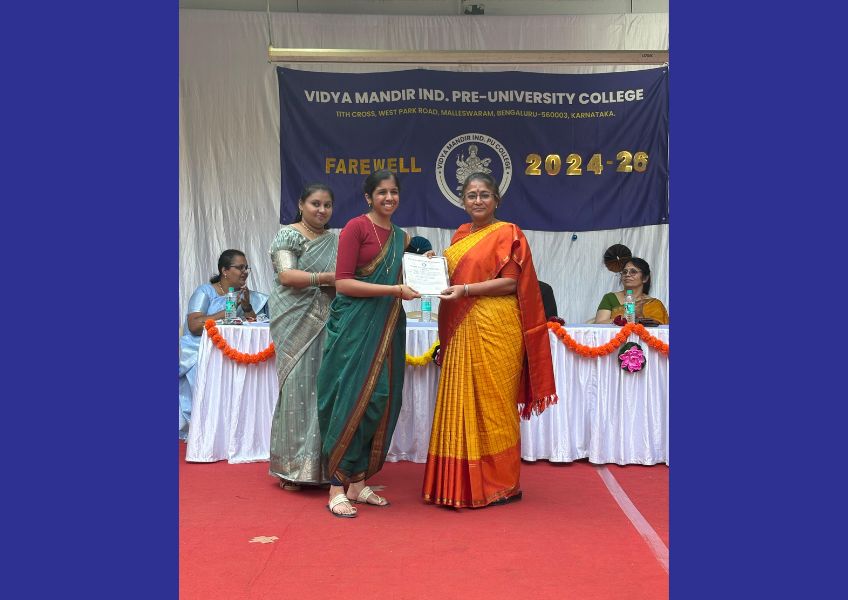 Farewells are those bitter sweet moments when we are ready to let our dear students soar out of our nest to conquer the skies. The college hosts the Farewell day party for the outgoing batch of II PU students every year, a few months before their board examinations. The batch of 2023 witnessed a colorful party hosted for them. A grand ceremony was organized to give the outgoing batch a fitting farewell. The II PU students turned up, dressed in their best, preparing for an evening with mixed emotions. During the official function, students got a platform to share their experiences. Selected students were conferred the “Spirit of Vidya Mandir” award for relentlessly upholding the spirit of the institution. Two students Vaishnav.S and Mohd.Salman were given the Best Student award which is a recognition of sterling virtues and bright personalities in our students.